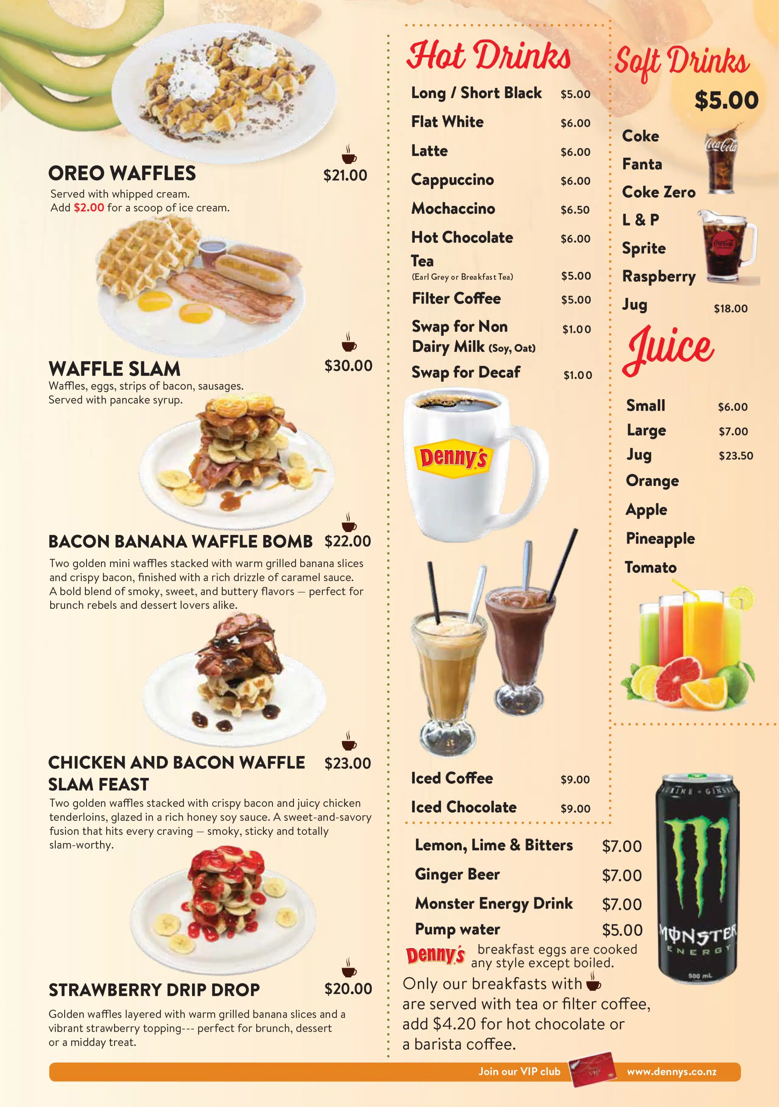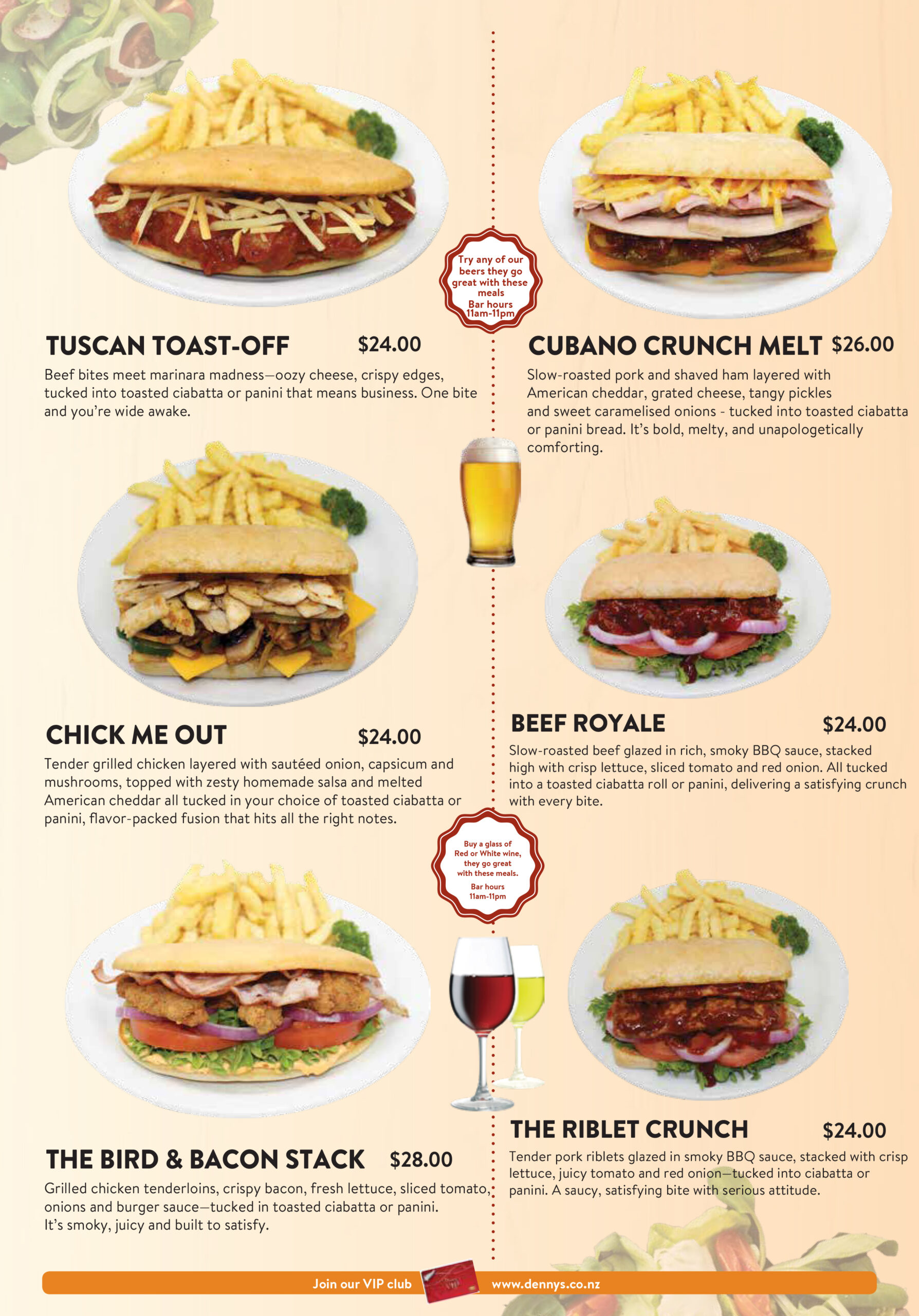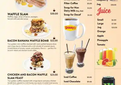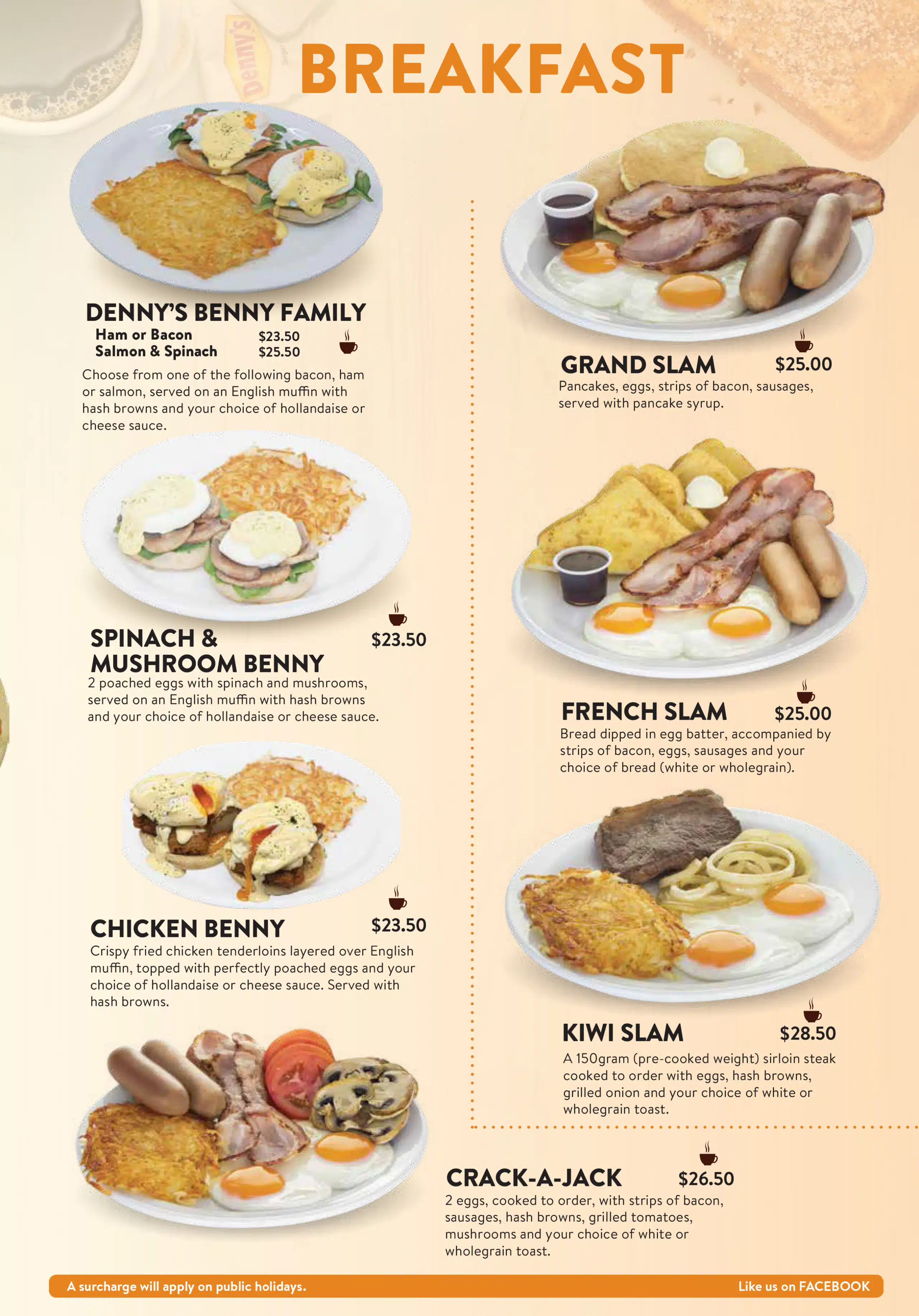 menu What are you hungry for? Dennys MenuBreakfast Appetizers Vegetarian Main MealsSandwiches & Burgers Senior MenuKid's Menu DessertBar Menu Dennys Menu Breakfast Appetizers Vegetarian Main Meals Sandwiches & Burgers Senior Menu Kid’s Menu Dessert Bar Menu Auckland CBD North Shore Highland Park New Lynn Manukau City Wellington Porirua Christchurch Menu Locations Company Connect Careers Contact us VIP Application Form Rewards FAQs New Promotions